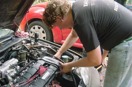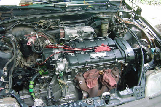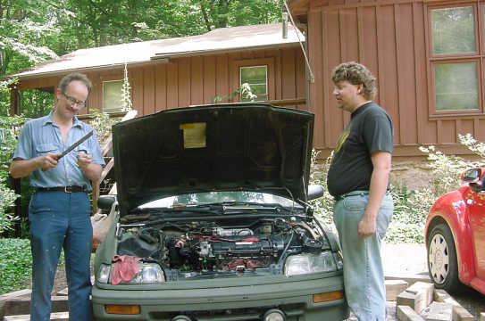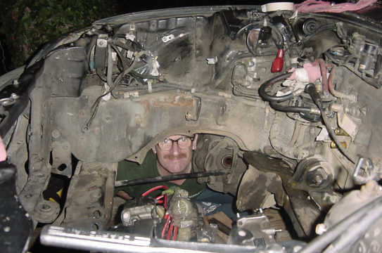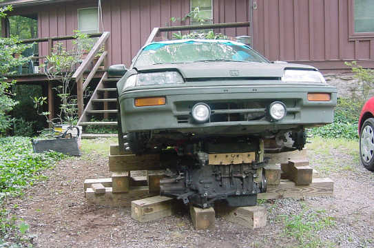 Rain delayed the work for a while. The car sat waiting for better weather with the old engine beneath it.