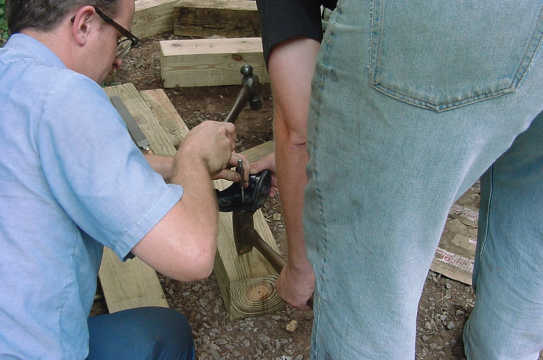 and Robert had prepared were used to make a ramp to slide the engine on its